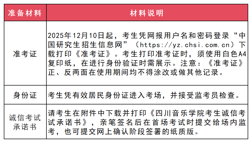 2026年全国硕士研究生招生考试(5128)四川音乐学院考点公告